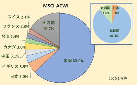 (ベンチマークの)投資国比率は下図のようになります(2026.1末時点)