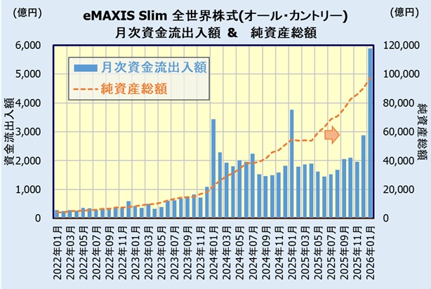 *純資産総額では2026.1末でオルカン9.7兆円、S&P500が10.0兆円