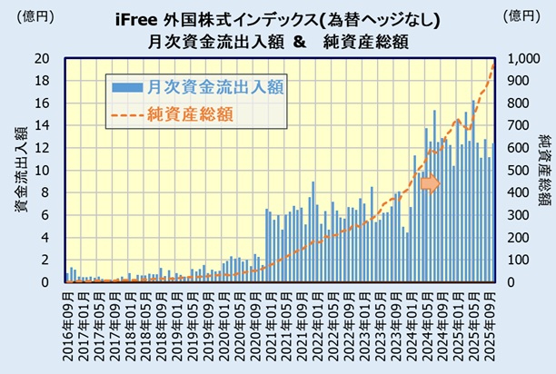 画像引用:iFree 外国株式インデックス(為替ヘッジなし) 月次レポート(2025/10)