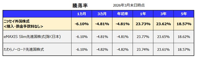 最新の騰落率[利回り](eMAXIS Slim先進国株式インデックスなどと比較) ~2026年2月末日時点~
