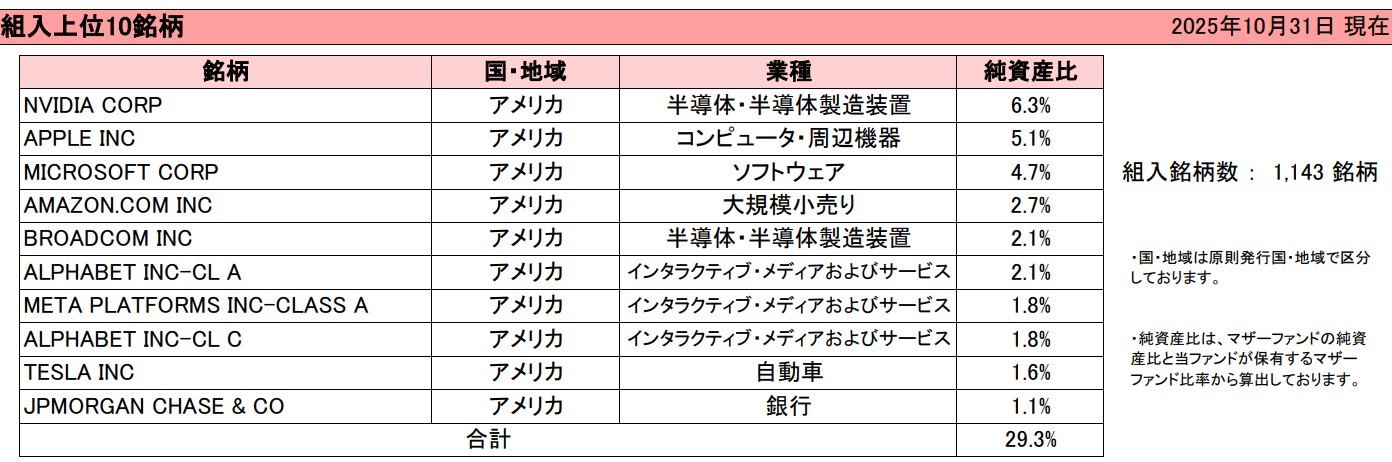 画像引用:野村スリーゼロ先進国株式投信 マンスリーレポート(2025/10)