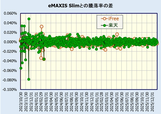 eMAXIS Slim米国株式(S&P500)との日次騰落率の差